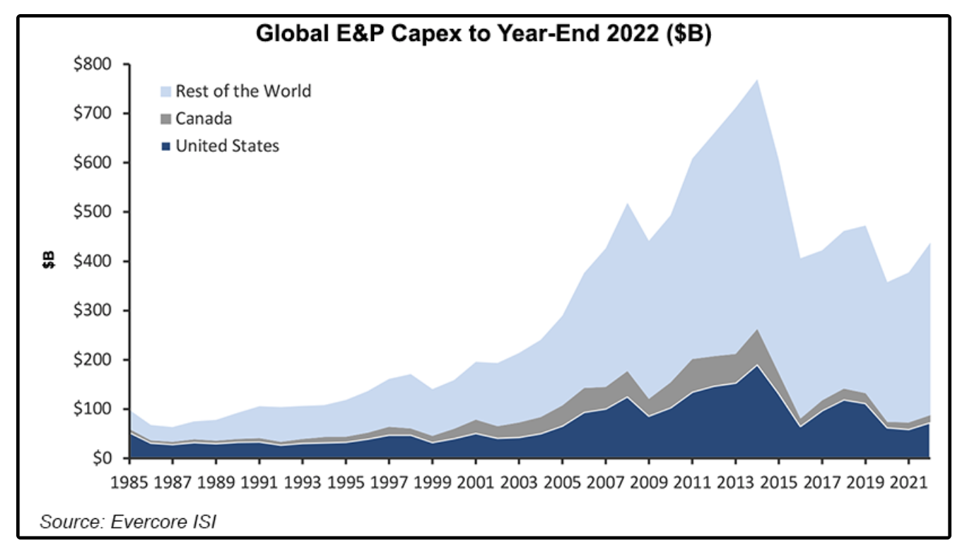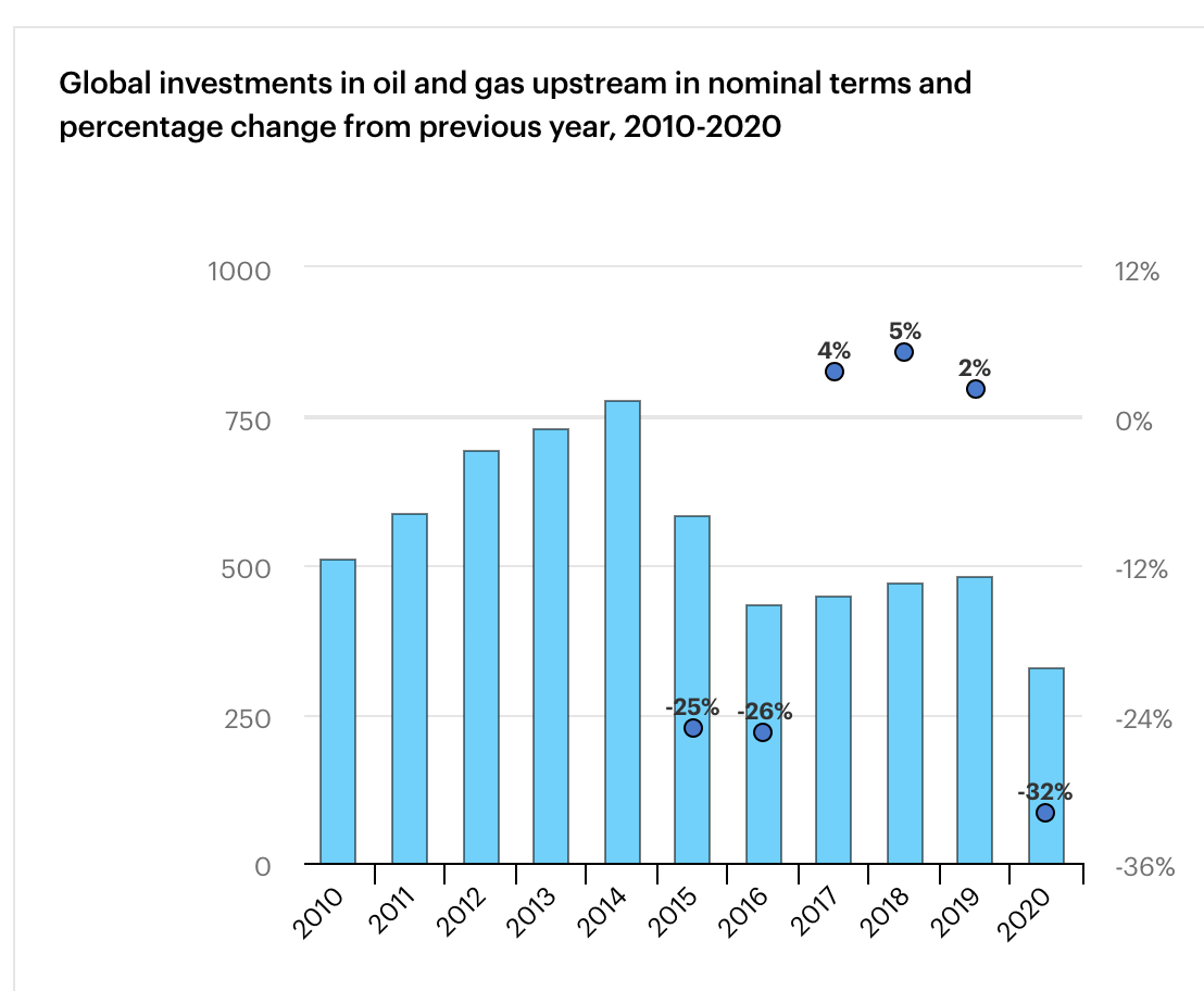 The six years prior to 2021 saw three years of large declines and three years of low single digit growth in investment in oil exploration and production.