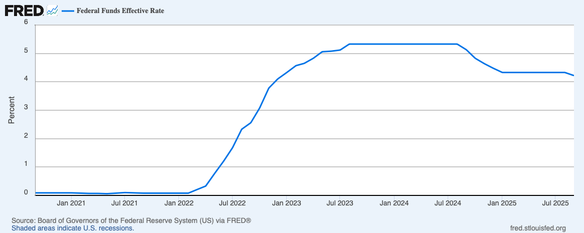 6. In mid September, the Federal Reserve announced a quarter point cut to the Federal Funds Rate to a range of 4.00% to 4.25%.