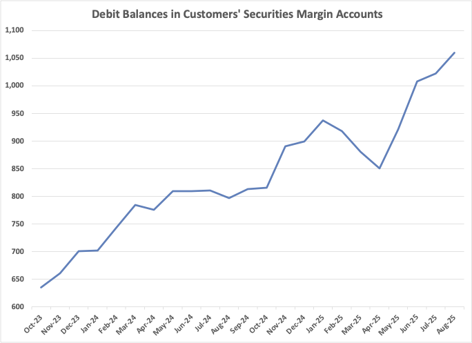 3. Margin loan balances rose 24.6% in just four months from April to August.